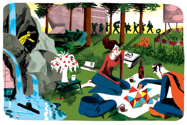 Two rather different children's books I've recently illustrated. One is a compilation of various short stories by Alvaro Magalhães, with fairies, thieves, ghosts, aliens, sharks and angels. The other is a somewhat special book, that comes with a CD and is the result of an original collaboration between the writer Alice Vieira and the musician Eurico Carrapatoso, who has composed a music piece after the story written specially for this project.